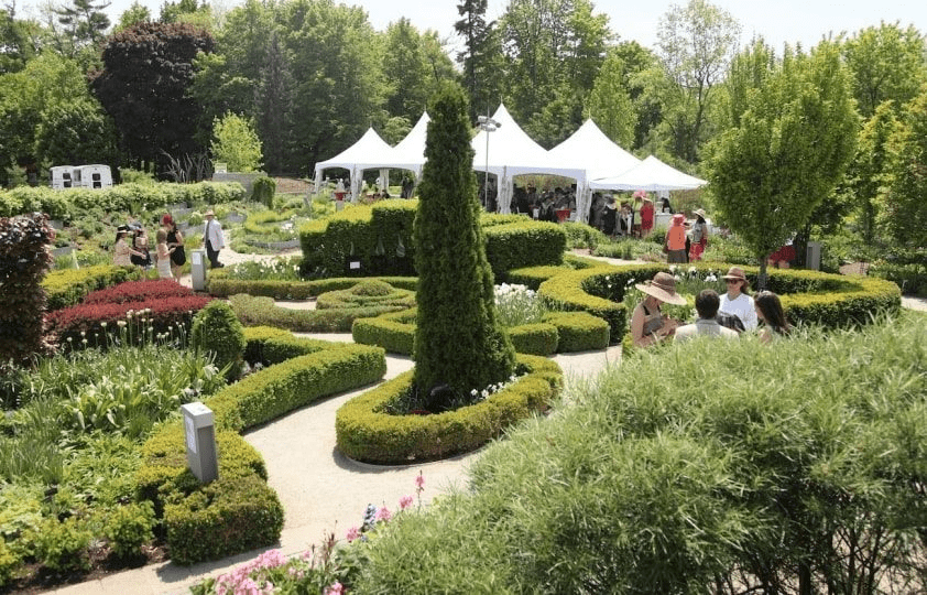 The botanical garden, located within Edwards Gardens, reflects the scale of a typical urban environment, allowing visitors to apply its ideas in their own gardens. Open year-round from dawn to dusk, the garden offers free entry.