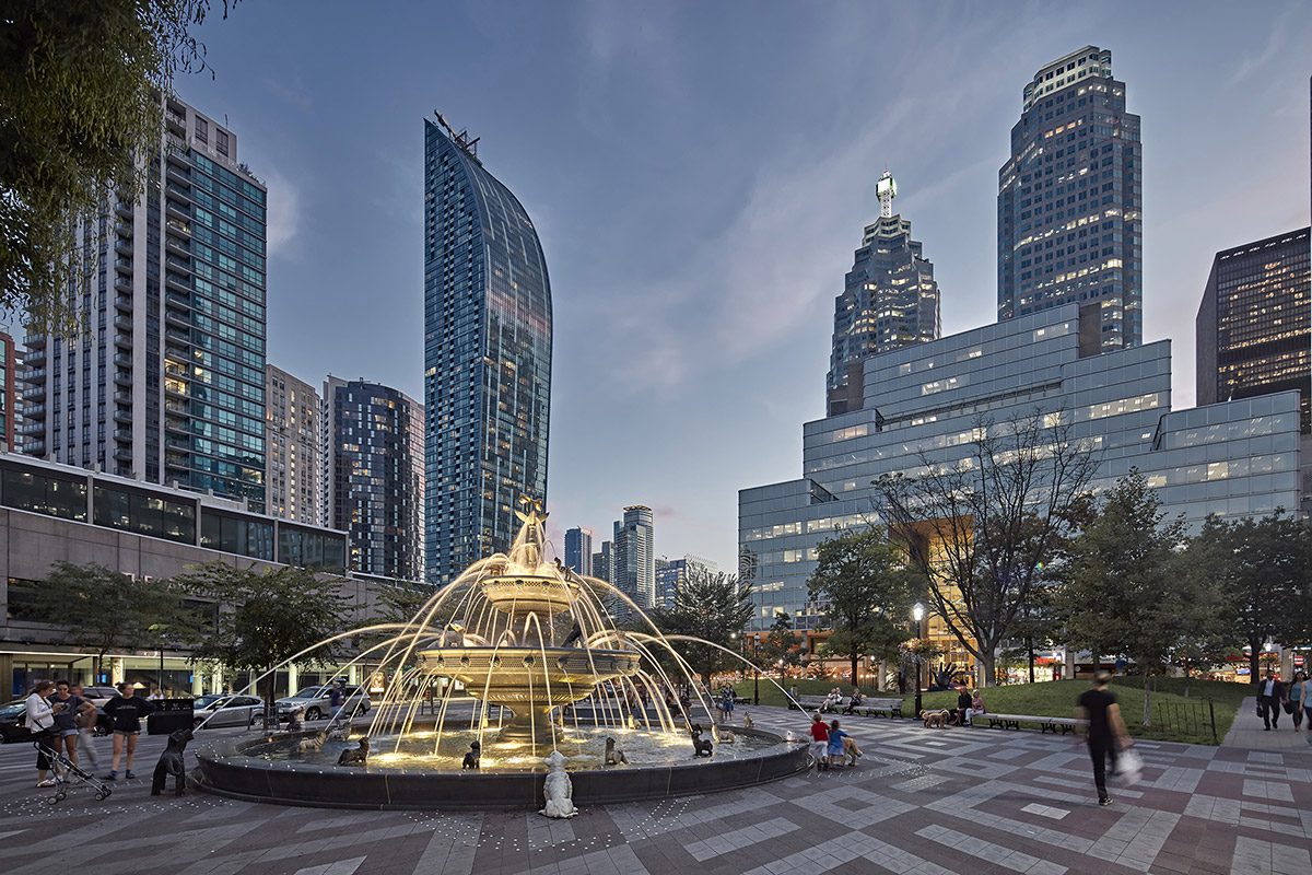 In 2015, Berczy Park underwent a major revitalization. The centrepiece of this project was the replacement of the old fountain with a stunning, two-tiered one, complete with new sculptures. The park’s redesign was led by Montreal-based landscape architect Claude Cormier. In total, the renovation of this recreational area cost $7.2 million.