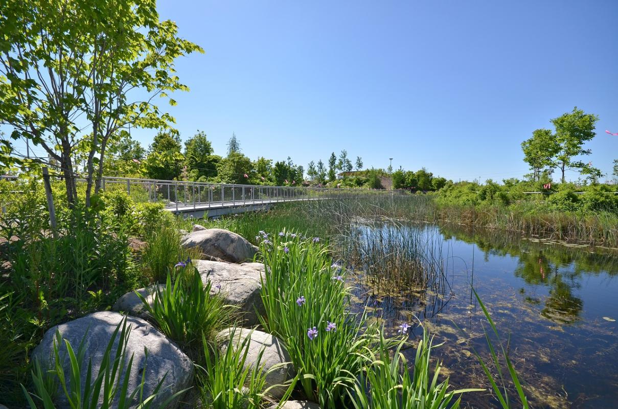 One of the best-known projects is Corktown Common Park. On the surface, it’s a vibrant green space in the Don Lands where people gather and relax. But beneath its hills lies a flood-protection berm that shields surrounding neighbourhoods from the Don River. This park blends recreation with cutting-edge safety design.