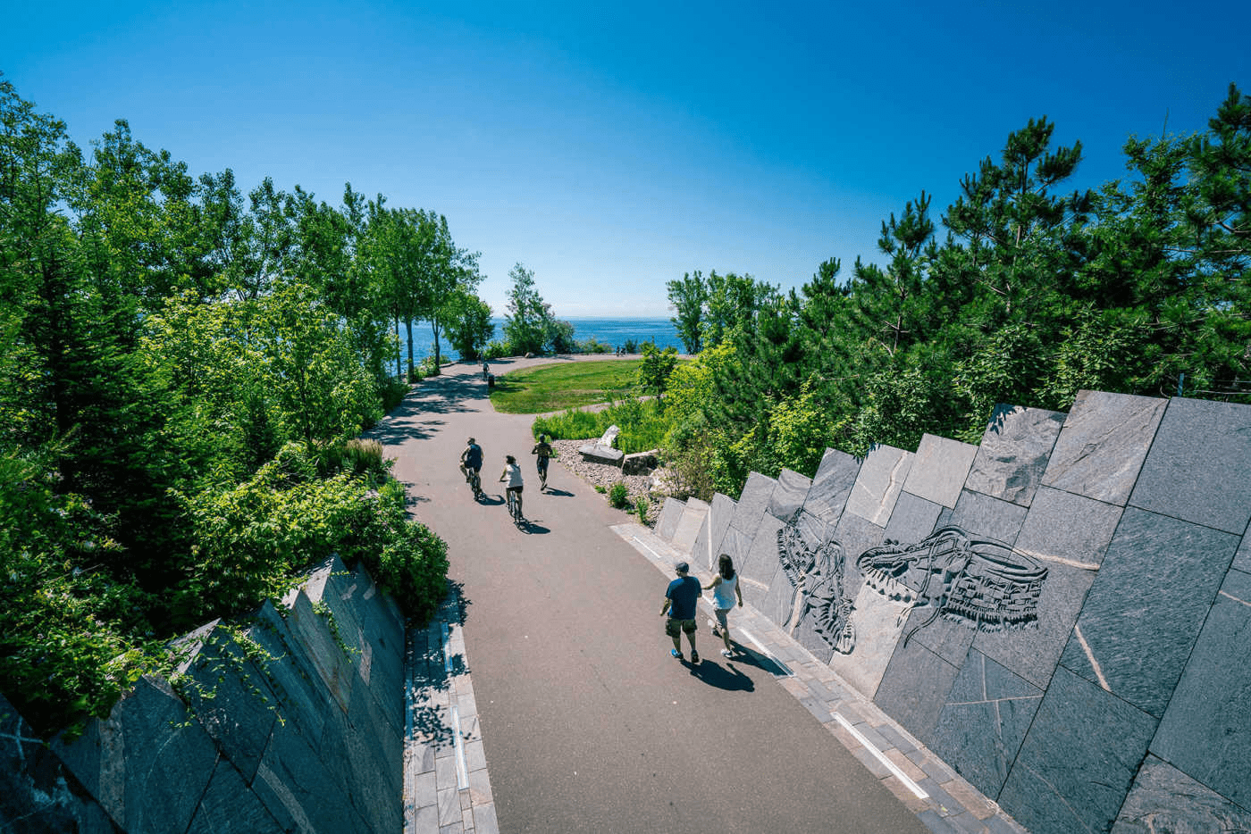 Коли ви вперше ввійдете в парк, то пройдете через Яр, на великих кам’яних стінах якого вигравірувано мокасин, щоб вшанувати культуру та спадщину перших націй Торонто. Звідси пройдете повз великий павільйон просто неба, побачите спільне вогнище, складені валуни та скелі, призначені для спонтанних ігор, і пагорби, ідеальні для того, щоб сидіти та насолоджуватися сходом або заходом сонця.