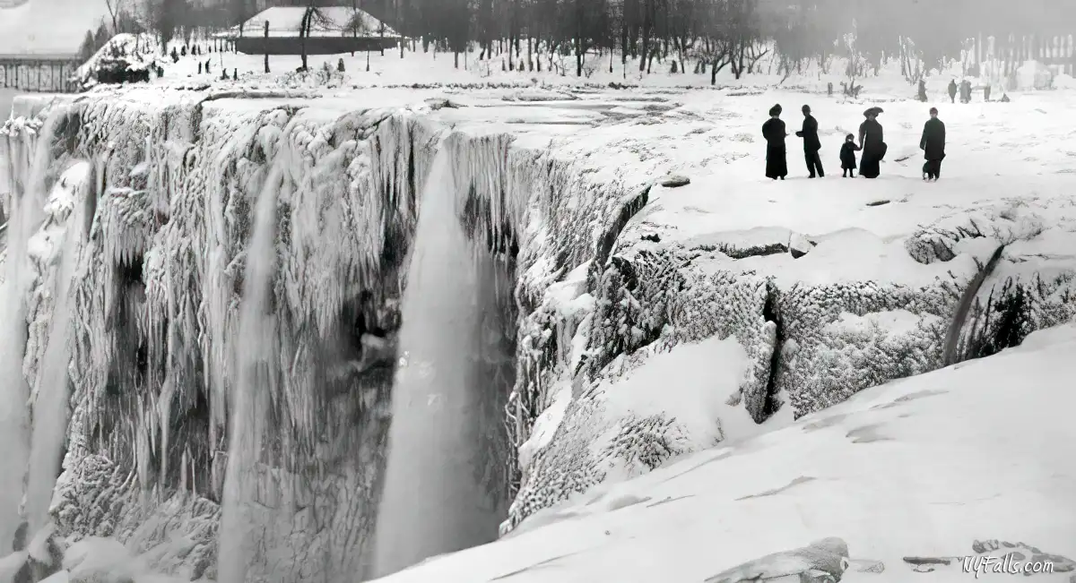Існує лише один випадок, коли потік Ніагарського водоспаду зупинився через замерзання. Це сталося 29 березня 1848 року. Після надзвичайно холодної зими, тобто під час потепління, товстий лід озера Ері почав ламатися. Сильний східний вітер сприяв утворенню льодової пробки в гирлі річки Ніагара, що заблокувала потік води до водоспаду “Підкова” (коли вода з гуркотом падає з водоспаду на скелі внизу, вона замерзає, утворюючи так званий “Льодовий міст”, який з’єднує американський і канадський береги).